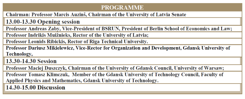Expectations and experiences are not always the same in the universities and the responsible ministry before and after the reform. In addition to the current situation in Latvia, the BSRUN event organized on 6 May gave an overview of the reform in two universities in Estonia, three universities in Finland and one university in Poland.